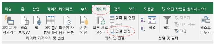 데이터를 > 연결 편집으로 들어갑니다