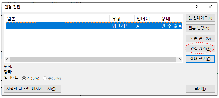 엑셀 - 이 통합문서에는 안전하지 않은 외부 데이터 원본에 대한 연결이 포함되어 있습니다 - 해결 방법